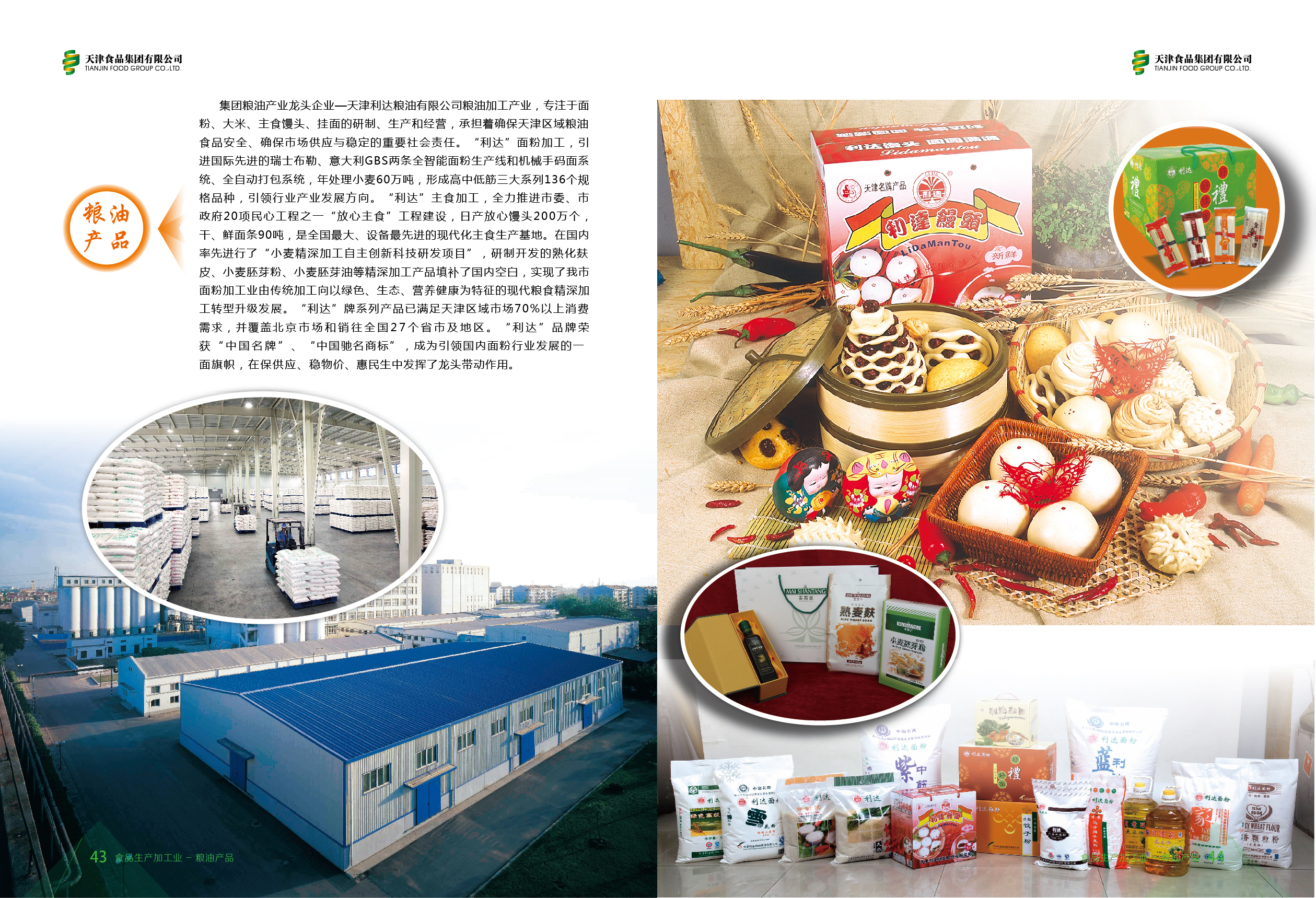 集團(tuán)糧油產(chǎn)業(yè)龍頭企業(yè)——天津市利達(dá)糧油有限公司專注于面粉、大米、主食饅頭和掛面的研制、生產(chǎn)和經(jīng)營,“利達(dá)”品牌在全國享有盛譽(yù),利達(dá)饅頭和利達(dá)蒸食花樣系列,品種多樣、麥香濃郁,年產(chǎn)量達(dá)4700萬個(gè)。在國內(nèi)率先進(jìn)行“小麥精深加工自主創(chuàng)新科技研發(fā)項(xiàng)目”,實(shí)現(xiàn)我市面粉加工業(yè)由傳統(tǒng)加工,向綠色、生態(tài)、營養(yǎng)健康為特征的現(xiàn)代精深加工轉(zhuǎn)型升級(jí)發(fā)展。