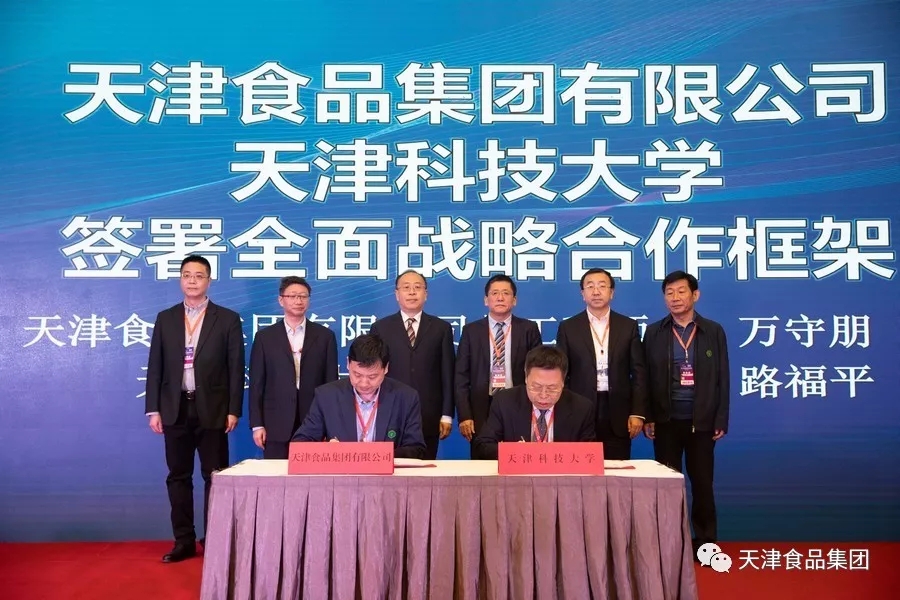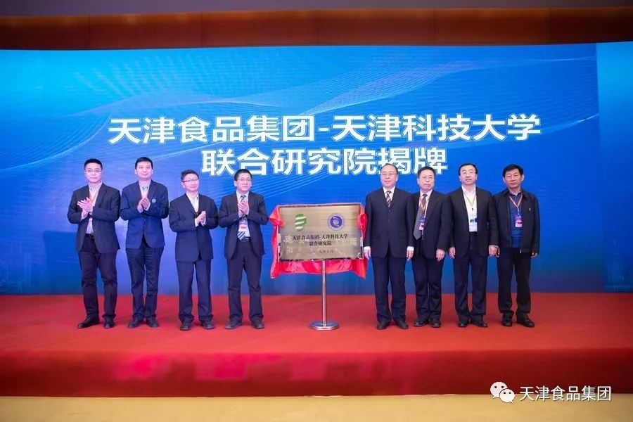 簽約儀式結(jié)束后,張勇和韓金玉共同為“天津食品集團-天津科技大學聯(lián)合研究院”揭牌,標志著雙方聯(lián)合建設以開放式研究院為代表的科技創(chuàng)新載體正式拉開序幕。