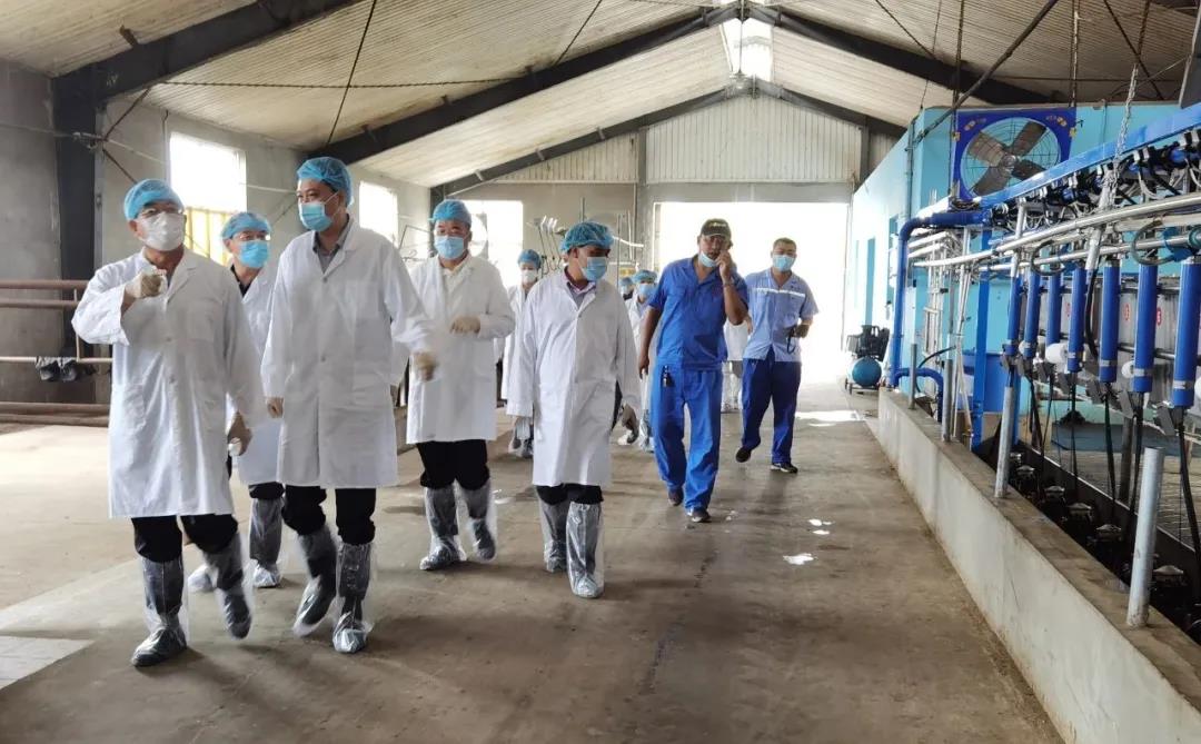 陳浙閩一行考察了第七奶牛場(chǎng)分公司的飼料制備區(qū)、牛舍飼喂區(qū)、擠奶車間、產(chǎn)房、沼氣站等重點(diǎn)區(qū)域。期間,第七奶牛場(chǎng)分公司負(fù)責(zé)人從夯實(shí)生物安全基礎(chǔ)、牢固防疫防線、提高預(yù)警、提升技能、增強(qiáng)防范意識(shí)、落實(shí)無(wú)害化處理監(jiān)管六方面,詳細(xì)匯報(bào)了嘉立荷牧業(yè)公司嚴(yán)格落實(shí)動(dòng)物防疫要求,切實(shí)維護(hù)公共衛(wèi)生和食品安全的情況。