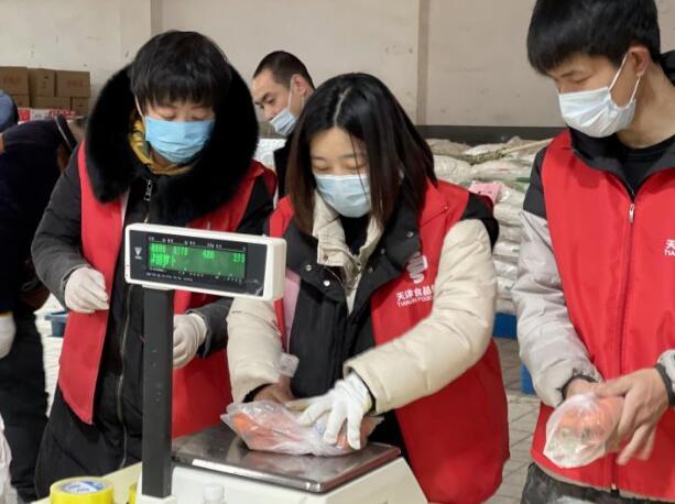 商貿(mào)公司嚴(yán)格執(zhí)行生產(chǎn)、物流、商品全鏈條的防疫消殺流程,保證人、車、物的防疫安全。特殊時(shí)期,居民為減少外出次數(shù),一次性采購量較大,為此,公司加大產(chǎn)品供應(yīng)力度,凌晨5點(diǎn)滿載蔬菜的貨車就陸續(xù)抵達(dá)南開區(qū)分倉,7點(diǎn)公司員工到崗對(duì)蔬菜進(jìn)行分揀、打包、稱重,9點(diǎn)新鮮、充足的蔬菜準(zhǔn)時(shí)到達(dá)各保供點(diǎn)位?;A(chǔ)民生食品一應(yīng)俱全,保證各點(diǎn)位供應(yīng)不脫銷、不斷貨,便民、貼心的服務(wù)得到了周圍居民的一致好評(píng)。“食品集團(tuán)的保供點(diǎn)位解決了我們?nèi)济贾保覀冞@小區(qū)老年人多,給我們帶來了便捷,小伙子們不怕麻煩,耐心為我們服務(wù),讓我們心里很踏實(shí)。”居民李大爺拎著剛買完的新鮮蔬菜安心的說道。