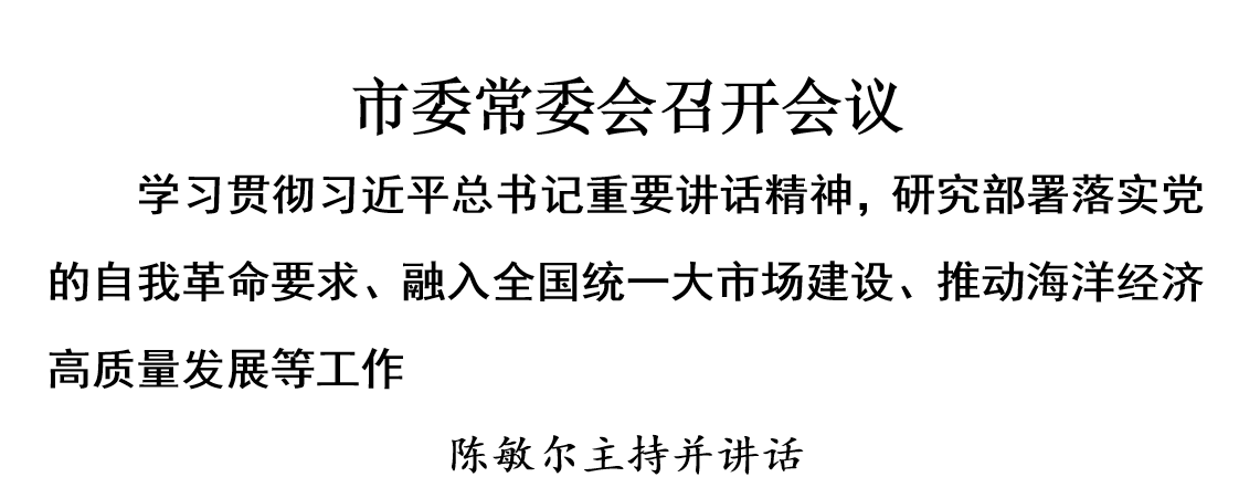 會議強(qiáng)調(diào),要認(rèn)真領(lǐng)會習(xí)近平總書記在中央財(cái)經(jīng)委員會第六次會議上的重要講話精神,與深學(xué)深用習(xí)近平經(jīng)濟(jì)思想結(jié)合起來,牢牢把握縱深推進(jìn)全國統(tǒng)一大市場建設(shè)“五統(tǒng)一、一開放”的基本要求,自覺在大局下想問題、做工作,持續(xù)深化要素市場化改革,推進(jìn)市場制度統(tǒng)一、設(shè)施聯(lián)通、監(jiān)管一致,著力推動(dòng)內(nèi)外貿(mào)一體化發(fā)展,積極參與全國統(tǒng)一大市場建設(shè)。要牢牢把握推動(dòng)海洋經(jīng)濟(jì)高質(zhì)量發(fā)展的重要要求,提升向海開放、向海發(fā)展能力,科學(xué)編制我市海洋經(jīng)濟(jì)發(fā)展“十五五”規(guī)劃,爭取更多海洋戰(zhàn)略科技力量布局天津,充分發(fā)揮天津港的優(yōu)勢和作用,大力發(fā)展港航服務(wù)業(yè),做大做強(qiáng)臨港產(chǎn)業(yè)、適港產(chǎn)業(yè),加強(qiáng)海洋生態(tài)保護(hù)修復(fù),深入推進(jìn)港產(chǎn)城融合發(fā)展,打造我國北方地區(qū)聯(lián)通國內(nèi)國際雙循環(huán)的重要戰(zhàn)略支點(diǎn)。
