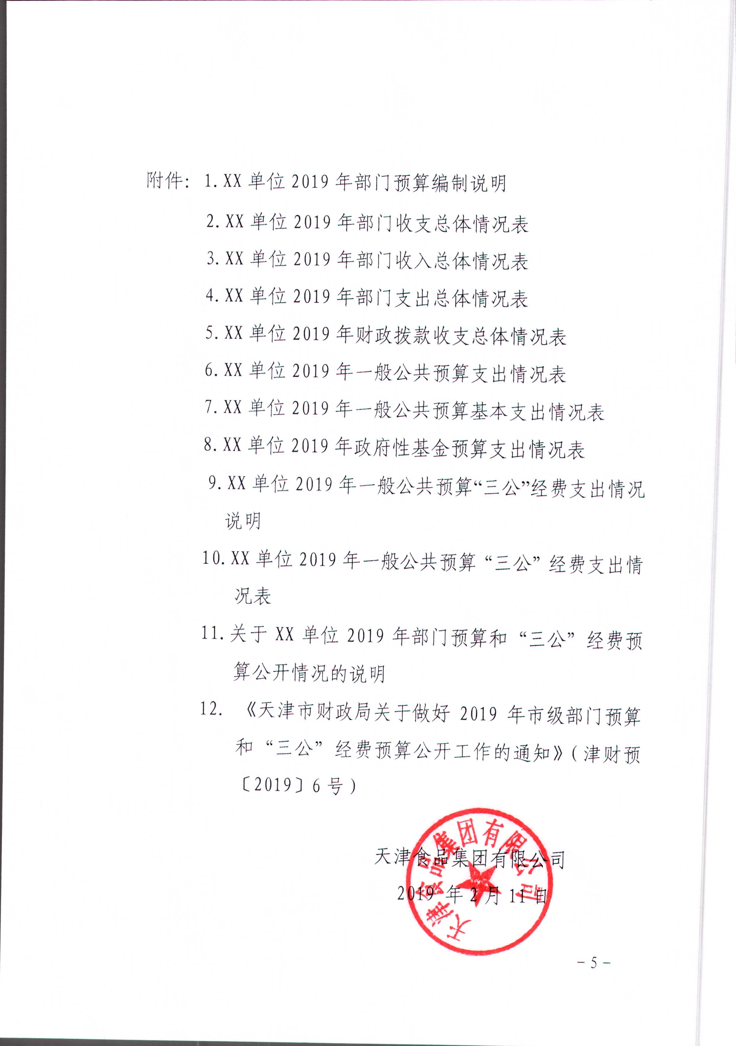 天津食品集團(tuán)關(guān)于轉(zhuǎn)發(fā)《天津市財(cái)政局關(guān)于做好2019年市級(jí)部門預(yù)算和“三公”經(jīng)費(fèi)預(yù)算公開工作的通